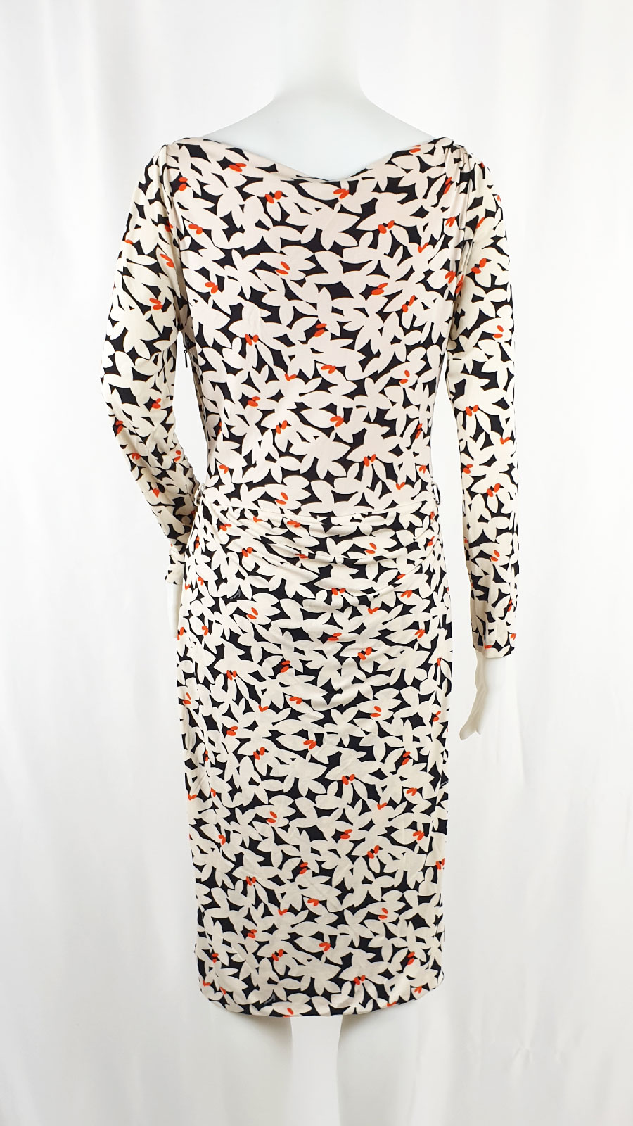 Abito aderente lungo con stampa floreale. Scollo morbido, piccolo spacco e zip laterale.