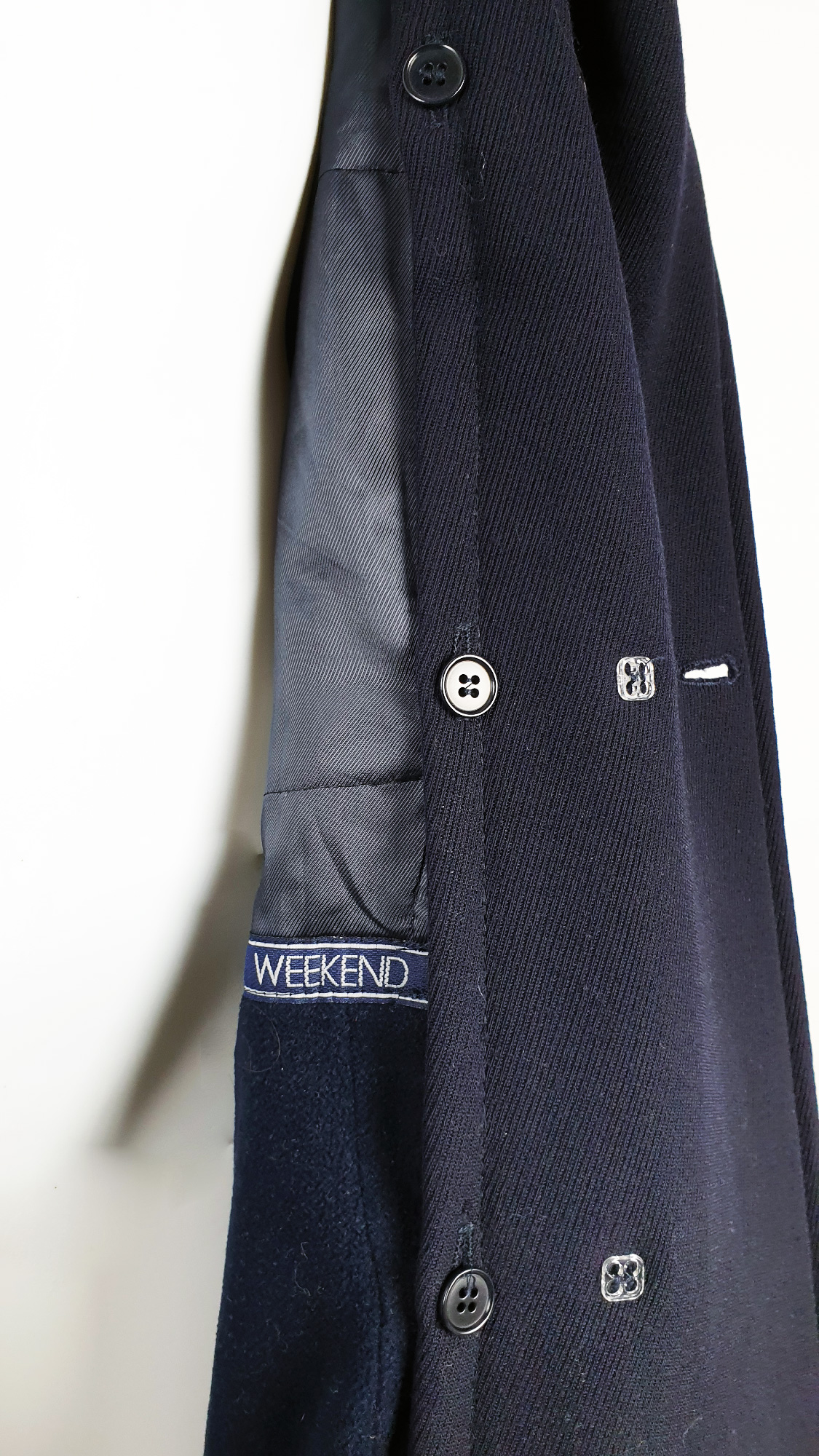 Cappotto lungo doppiopetto con tasche frontali, collo a revers e imbottitura interna estraibile.